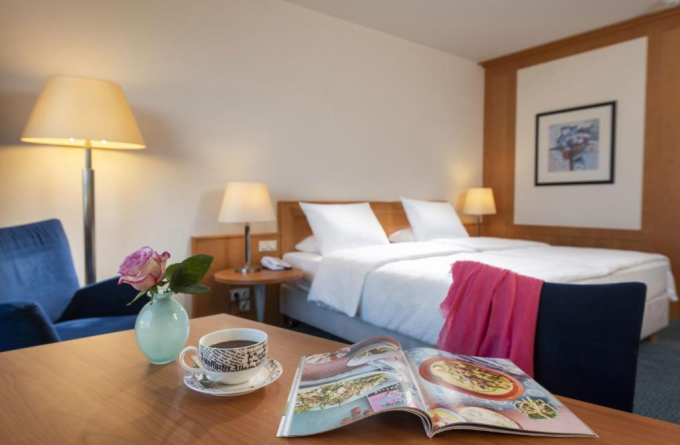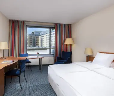 Подарете си отпускащ престой в луксозния Maritim Hotel Frankfurt, каквато и да е целта на посещението ви – работа или почивка. Четиризвездният хотел предоставя огромни стаи, обзаведени пищно и с удобства като климатик, сателитна телевизия и минибар. Сградата е на еднакво разстояние от Панаирния център на Франкфурт и популярния търговски център Skyline Plaza. По отношение на храненето имате на свое разположение три ресторанта и бар. За още по-пълноценен отдих можете да наемете велосипед, да се потопите в закрития басейн, да си починете в просторната сауна, да потренирате във фитнеса или да си уредите дълбок масаж.