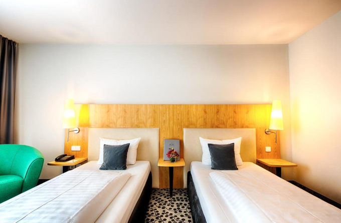 Four Points by Sheraton Offenbach Plaza е 4-звезден хотел и заслужава всичките си звезди с удобствата, които предлага и стратегическата си позиция, обслужваща всички нужди, свързани с пътуването ви. Всяка хотелска стая предлага безплатен Wi-Fi интернет, модерно обзавеждане и звукоизолирани стени, които ще подарят здрав сън до сутринта всяка нощ. Ресторант Paul ще задоволи всичките ви прищявки, а Норвежката сауна, солариум и фитнес център ще се погрижат за вашето тяло. Ако трябва да стигнете някъде, може да отидете до центъра на Офенбах за 2 минути пеша или да наемете кола, за да поемете по магистрала A661 към Франкфурт. Хотелът предоставя удобства за хора с увреждания.